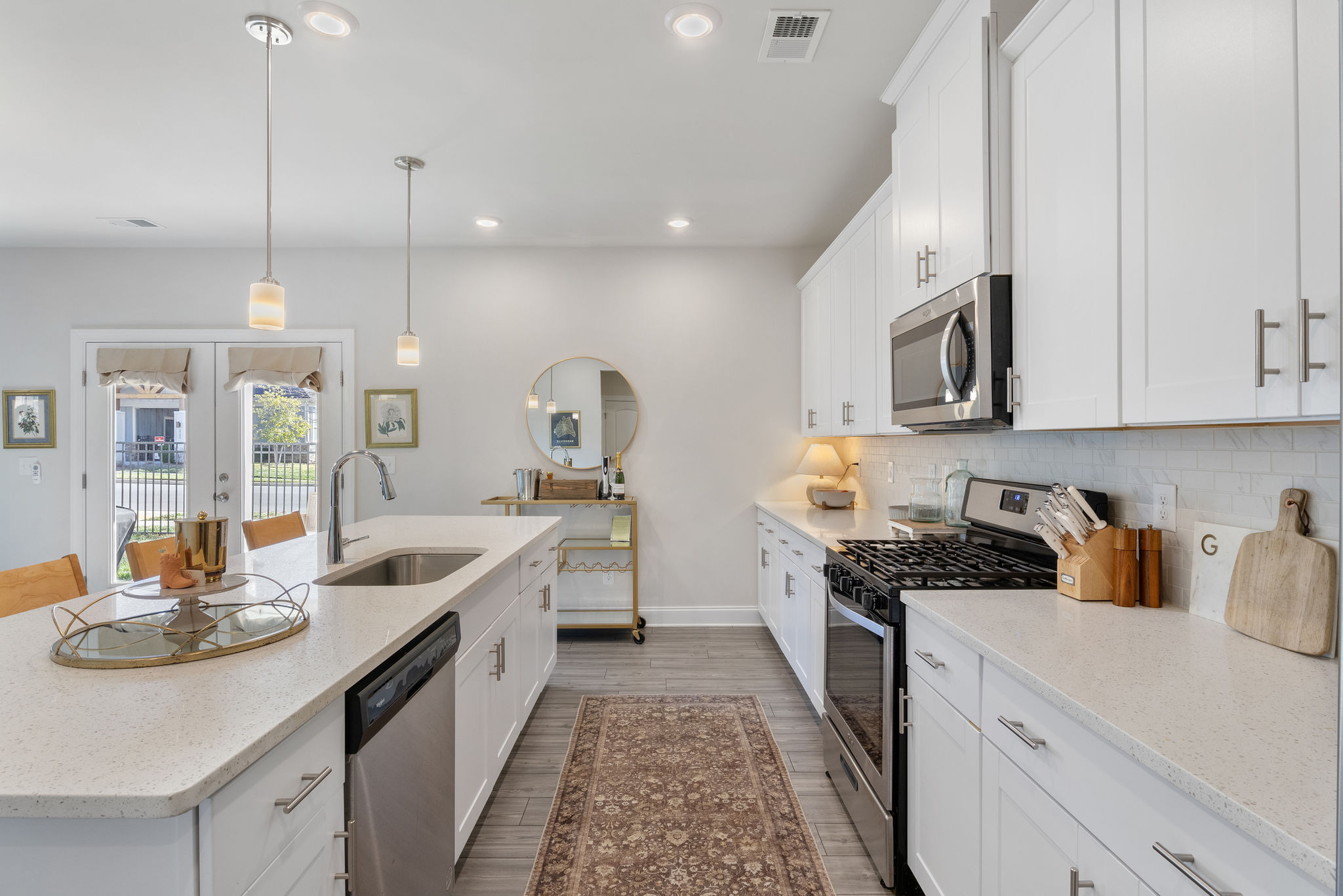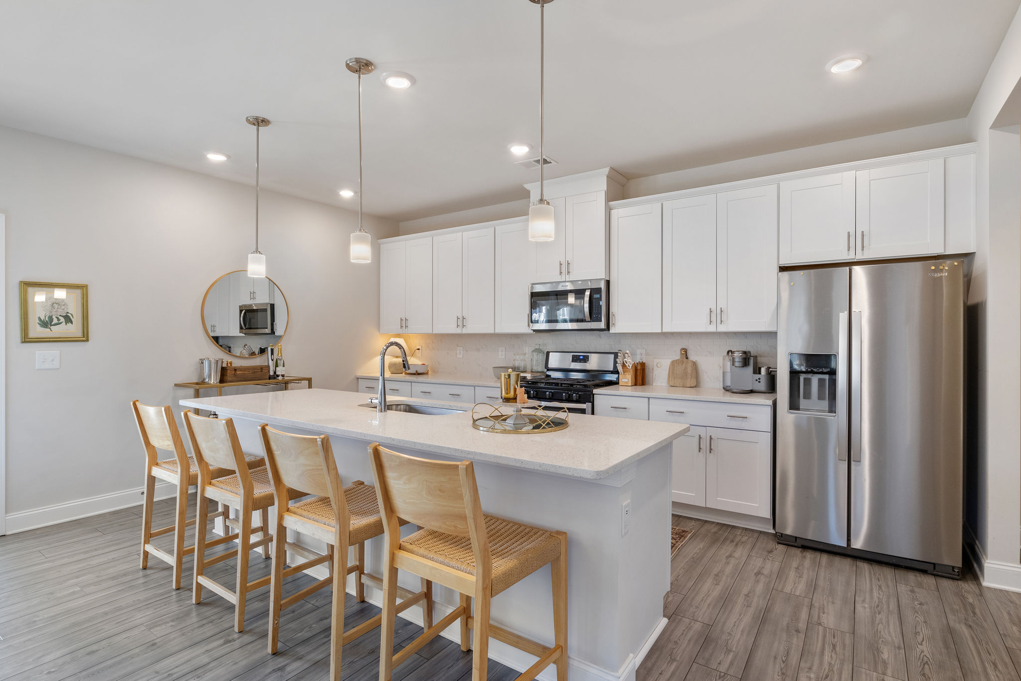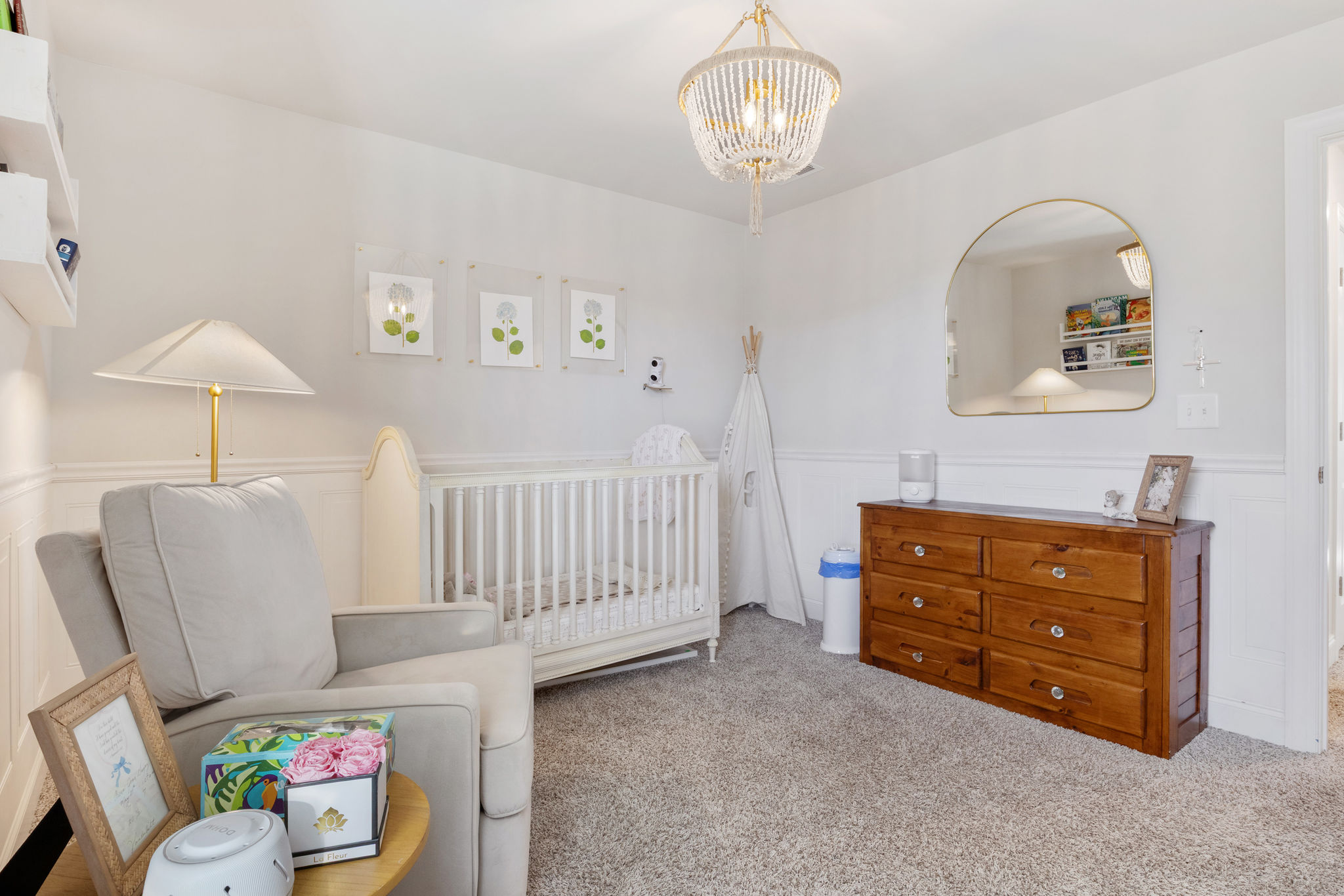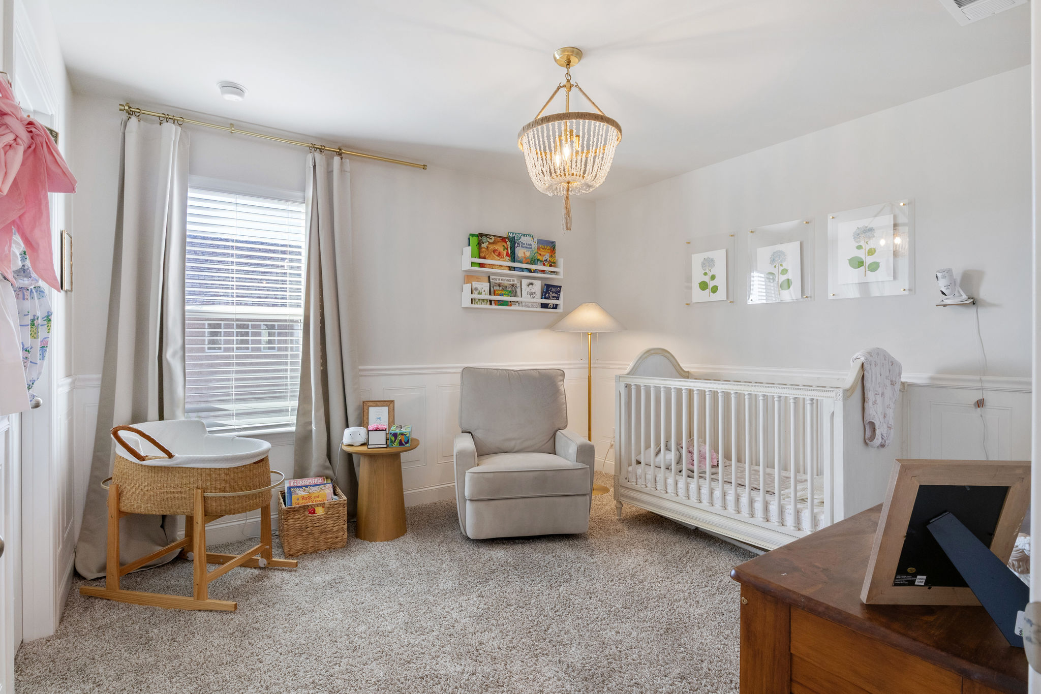 • Designer Accents: Wainscotting detail paired with a statement light fixture in the guest room